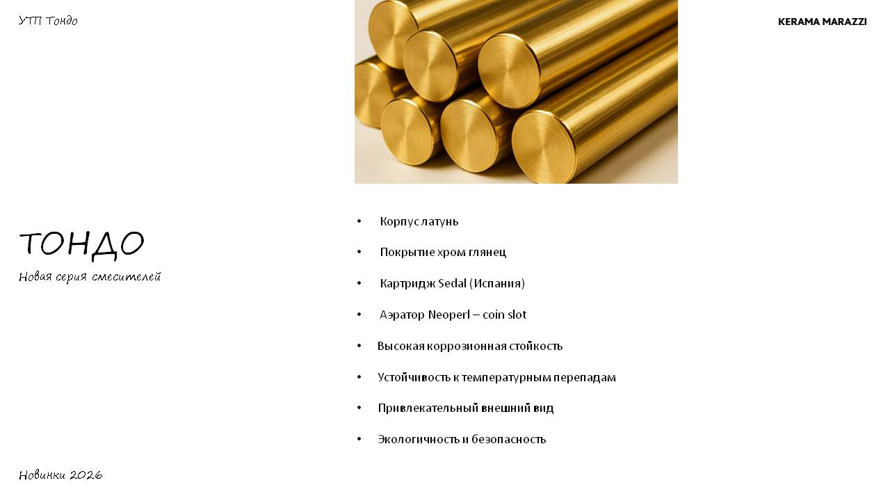 Название серии Тондо происходит от итальянского слова, означающего «круглый». Эта философия нашла отражение в каждой детали смесителей, где плавные линии и эргономичный дизайн создают неповторимый образ современной сантехники.