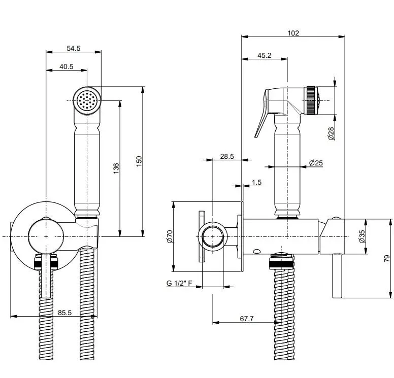 Смеситель с гигиеническим душем NOTA встроенного монтажа, хром