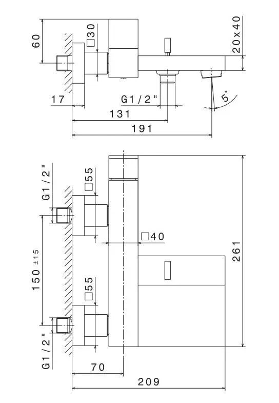 Смеситель для ванны FUTURA настенный, матовый черный