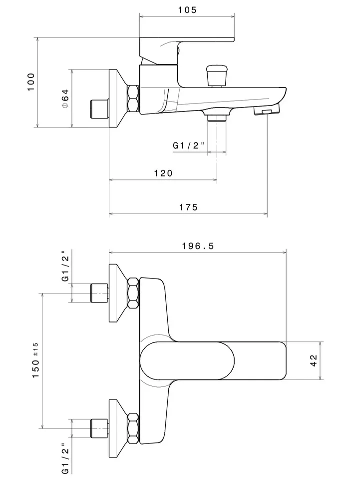 Смеситель для ванны PIANO настенный, хром глянец