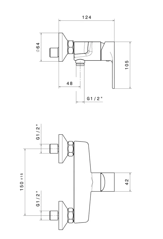 Смеситель для душа PIANO настенный без излива, хром глянец