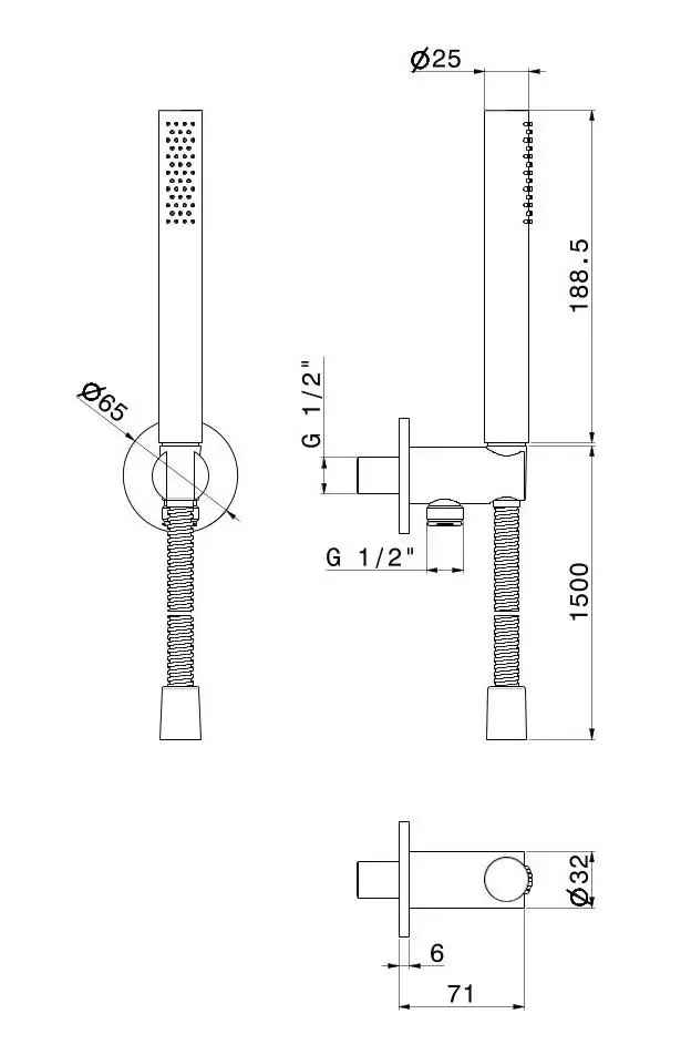Ручной душ ETERNA с держателем, шлангом и выходом для воды, нержавеющая сталь
