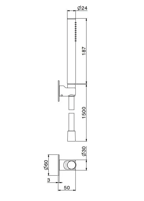 Ручной душ OLE с держателем для лейки и шлангом, без вывода для подачи воды, хром