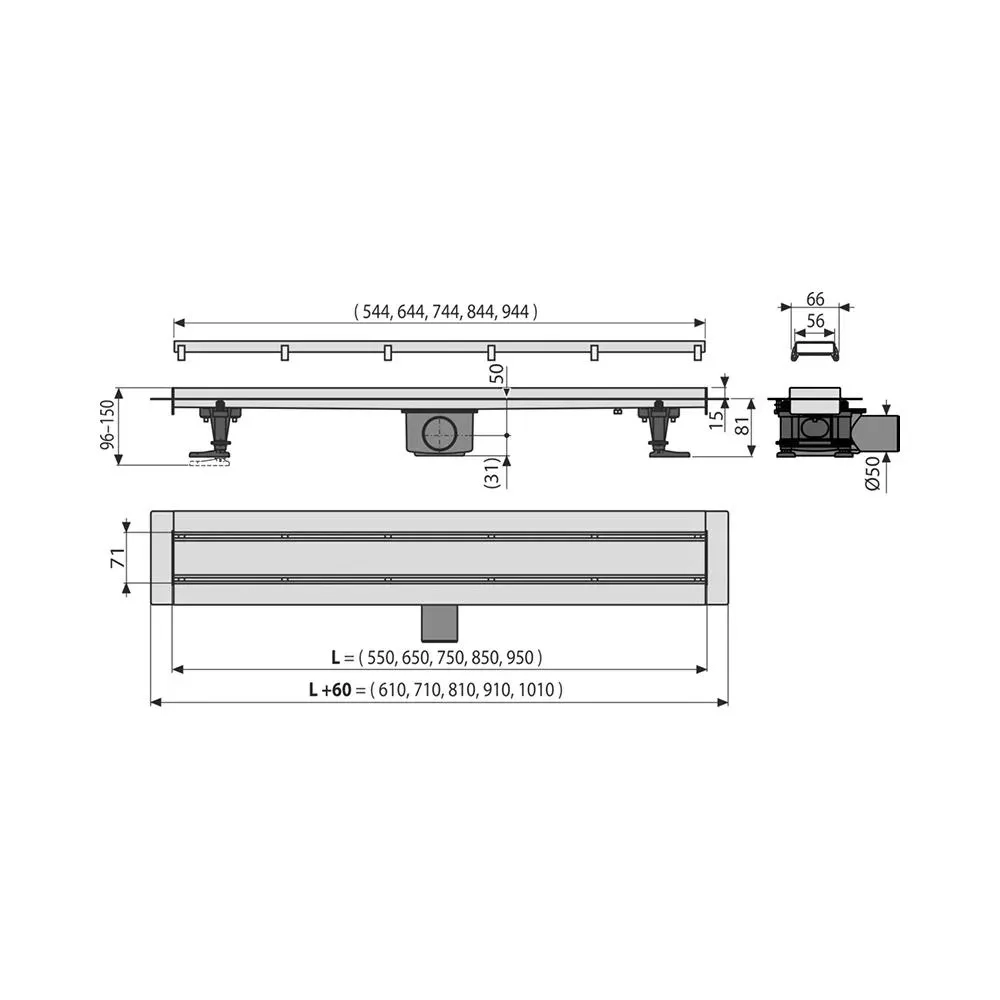 Душевой лоток double из нержавеющей стали, 85 см