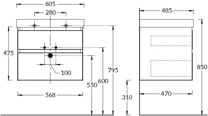 Тумба CUBO подвесная с ящиками 60, лимо матовая