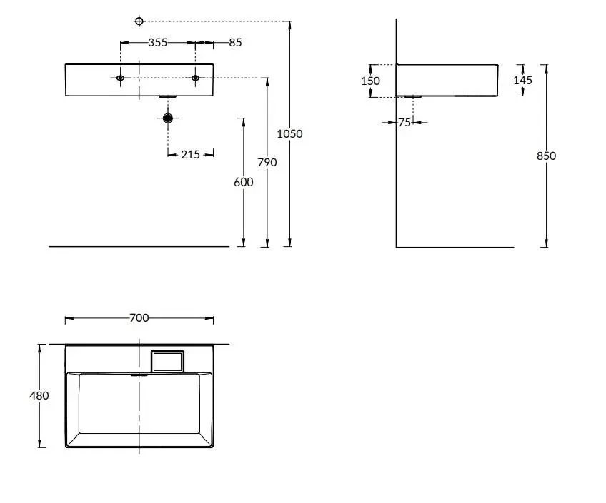 Раковина LOGICA мебельная\подвесная без отверстий 70, белая глянцевая