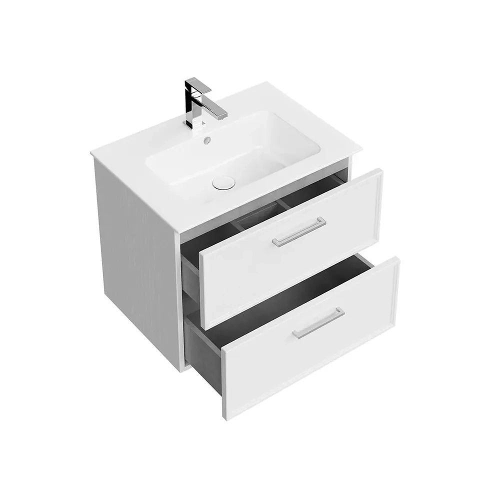 Тумба PIANO Classic подвесная 65 см, 2 ящика, ясень белый матовый