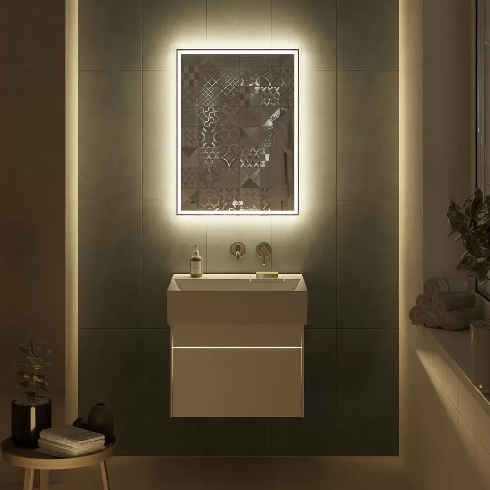 Зеркало TECNO c LED 60 с подсветкой, с функцией антизапотевание, белое глянцевое